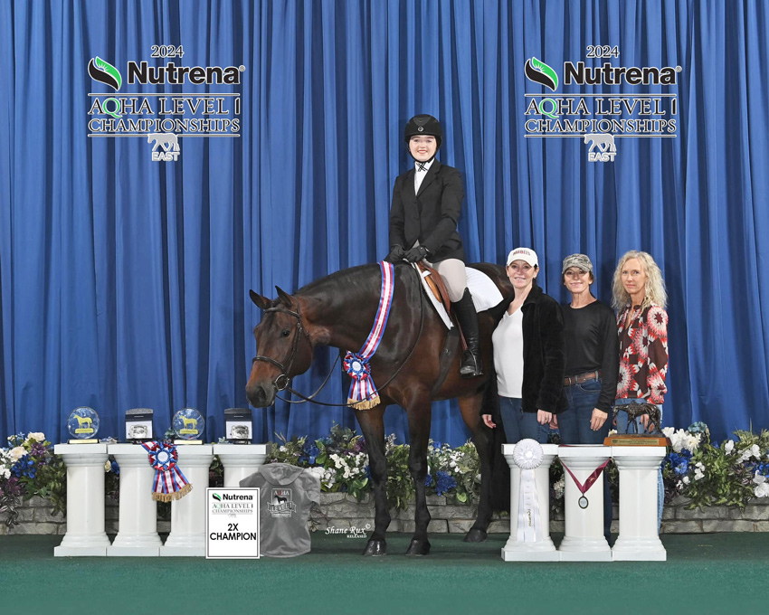 ![]() NSBA Horse of the Year Congress Champion Maturity $10,000 Ltd Horse Ltd Rider Western Pleasure Congress Reserve Champion Maturity $10,000 Ltd Horse Open Western Pleasure Congress Reserve Champion Junior Trail Congress Reserve Champion L1 Western Riding NSBA Reserve World Champion Green Junior Western Riding NSBA High Point Green Western Pleasure Champion NSBA High Point Green Western Riding Reserve Champion AQHA World Junior Western Riding 3rd AQHA World Show Champion L2 Junior Western Pleasure AQHA World Show Reserve Champion L1 Western Riding Stakes AQHA World Show Reserve Champion L2 Jr Western Riding LTE $35,000+ and 359 points |